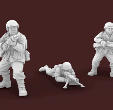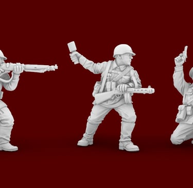 Nossas exclusivas miniaturas de infantaria num preview exclusivo para vocês. Na ordem: Americanos/FEB, Alemães e Russos. Fiquem ligados que mais modelos estão a caminho!