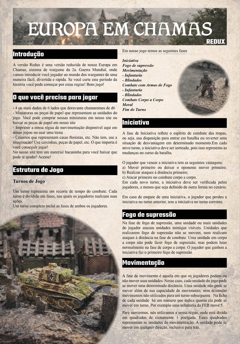 O Reduz é uma opção para você novato começar a jogar o Europa em Chamas! As regras são introdutórias e não perdem o espírito do jogo! Melhor de tudo: GRATUITAS!